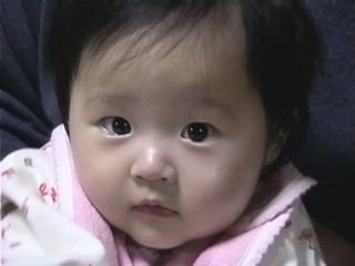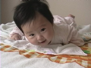 2000年12月 4か月 おめめぱっちり。ちょっとおすまし顔でしょうか? 毎日見ていると気づきませんが、顔って変化するものです。かなり女の子らしくなってきた気がします。 仕事で疲れても微笑まれるとやっぱり癒されます。 |
