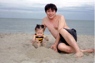2002.2.24 海ほたる いなかのじいちゃん、ばあちゃんが遊びにきましたので一緒にアクアラインの海ほたるへ遊びに行きました。 なつみは柵から海を見下ろしてましたが、こわがる様子もなく、楽しそうでした。海の上でも元気ななつみです。 |