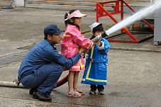 今回で3回目の参加となるちびヤン。おかげでイベントの内容にもかなり慣れました。 今年は健太郎にとっては初の放水体験でした。 |