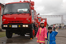 こちらは年々人気も上がっている消防車の体験搭乗。 普段は入れない滑走路を80km/h爆走する名物イベント。 |