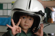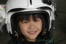 去年に引き続き、パイロットスーツを着たなつみさん。 まだまだヘルメットは大きいようですが、去年よりはしっくりきてるような気がしますね。 |