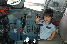 健太郎のコックピットデビューです。できればパイロットになってほしいなぁ〜。 ・・・というパパの思いを込めて。 |