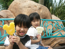 午前中を遊び倒し、疲れた体をアイスで休めているところ。 シーは随所にベンチが設置されており、それだけ「疲れる」という事でしょう。疲れたパパさんの姿が多くて。。。 |