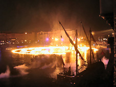 夜は、水と光と炎によるエンターテイメントショー。 裏手に場所を取ってしまったので「一部の演出が見られない」と言われましたが、違和感もなく楽しむことができました。 |